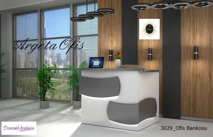 1) Banko Şekli / Formu : Bu model, L Şeklinde Köşeli, formda üretilmiş bir karşılama bankosudur.